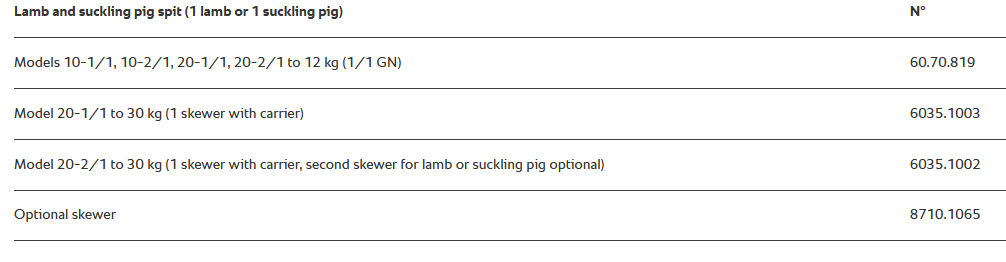 RATIONAL σούβλα αρνιού και γουρουνιού Σούβλα για ψήσιμο αρνιού και γουρουνιού RATIONAL Ετοιμάστε εύκολα ολόκληρα αρνιά και χοιρινά έως και 30 κιλά. ΑΞΕΣΟΥΑΡ RATIONAL